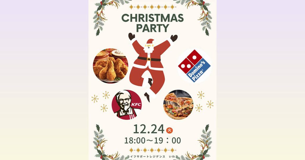 🎄ライフサポートレジデンスいわきのクリスマス会 有限会社トータルケアサービスが管理する共同住宅「ライフサポートレジデンスいわき」では、毎年入居者様と一緒に楽しいクリスマスを過ごしています。 今年も12月24日(火)の夕食時間(18:00~19:00)に、... -